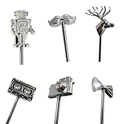 The stirrers range from bowties to cassette tapes to tiny robots. Not to mention – these guys are really quite well made and feel as though they could hold up to a decent amount of bar wear.