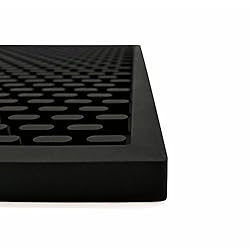We solved both problems in one fell swoop. We made a super thick, heavy duty barmat with silicone instead of rubber. That makes it far more durable for long-term use, makes it completely safe for food contact, and also avoids that rubbery smell. Win-win-win. The one downside is that it costs WAY more to make the mat from Silicone instead of rubber. (like 2-3x as much in material cost.) So we’ve priced it accordingly.