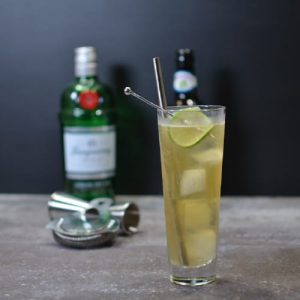 Last week we had guests over for dinner and took the occasion to offer them a cocktail. (With a home bar like this, it’s hard to avoid!) But Chris loves when this happens. It brings him back to his bartending days – and gives him free license to create something the guest will love.